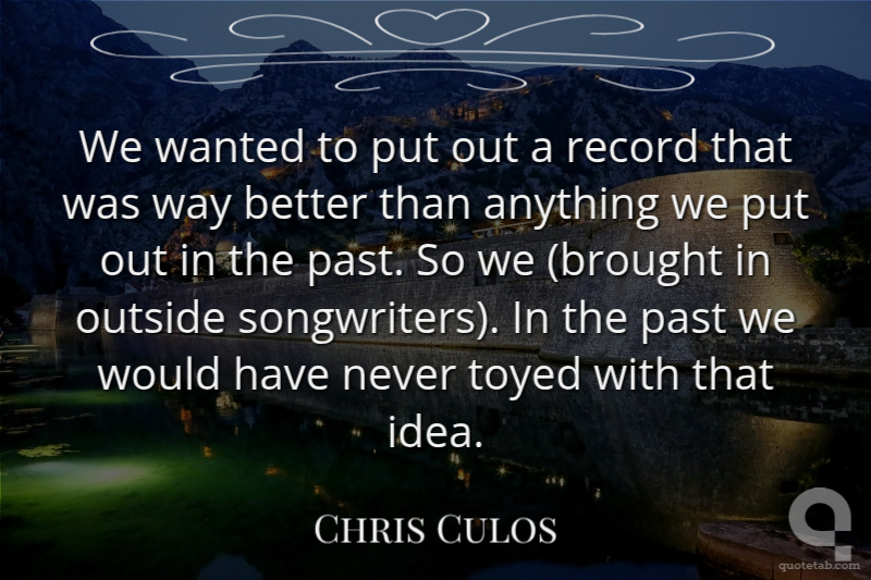 We wanted to put out a record that was way better than anything we put out in the past. So we (brought in outside songwriters). In the past we would have never toyed with that idea.