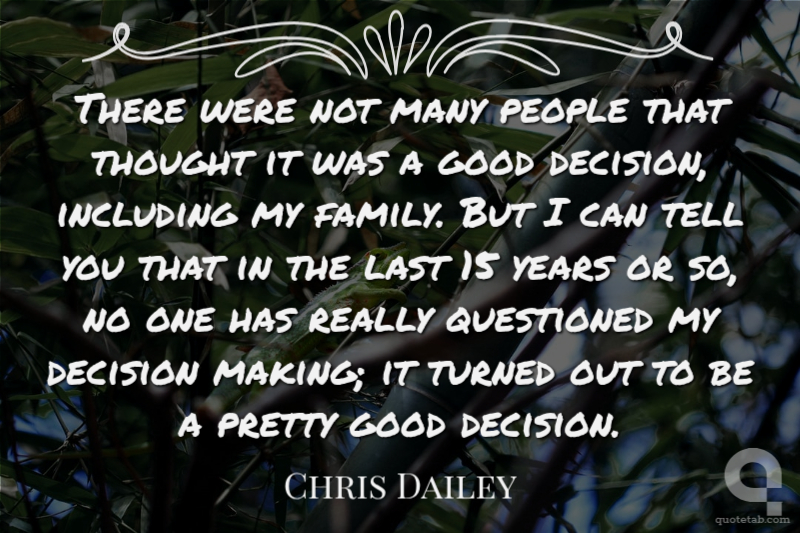 There were not many people that thought it was a good decision, including my family. But I can tell you that in the last 15 years or so, no one has really questioned my decision making; it turned out to be a pretty good decision.
