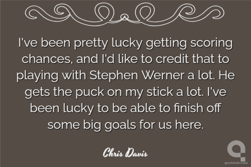 I've been pretty lucky getting scoring chances, and I'd like to credit that to playing with Stephen Werner a lot. He gets the puck on my stick a lot. I've been lucky to be able to finish off some big goals for us here.