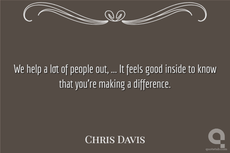 We help a lot of people out, ... It feels good inside to know that you're making a difference.