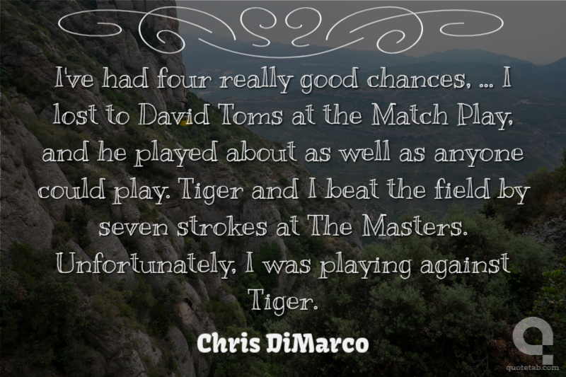I've had four really good chances, ... I lost to David Toms at the Match Play, and he played about as well as anyone could play. Tiger and I beat the field by seven strokes at The Masters. Unfortunately, I was playing against Tiger.