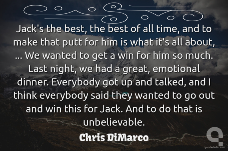 Jack's the best, the best of all time, and to make that putt for him is what it's all about, ... We wanted to get a win for him so much. Last night, we had a great, emotional dinner. Everybody got up and talked, and I think everybody said they wanted to go out and win this for Jack. And to do that is unbelievable.