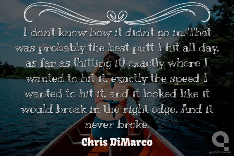 I don't know how it didn't go in. That was probably the best putt I hit all day, as far as (hitting it) exactly where I wanted to hit it, exactly the speed I wanted to hit it, and it looked like it would break in the right edge. And it never broke.