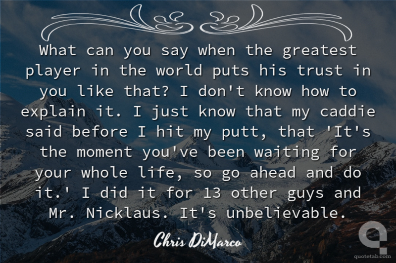 What can you say when the greatest player in the world puts his trust in you like that? I don't know how to explain it. I just know that my caddie said before I hit my putt, that 'It's the moment you've been waiting for your whole life, so go ahead and do it.' I did it for 13 other guys and Mr. Nicklaus. It's unbelievable.