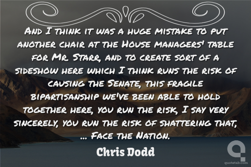 And I think it was a huge mistake to put another chair at the House managers' table for Mr. Starr, and to create sort of a sideshow here which I think runs the risk of causing the Senate, this fragile bipartisanship we've been able to hold together here, you run the risk, I say very sincerely, you run the risk of shattering that, ... Face the Nation.