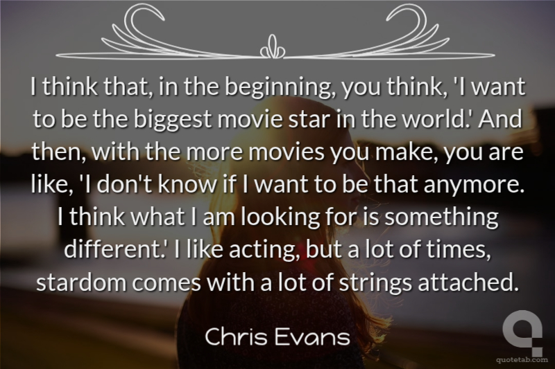 I think that, in the beginning, you think, 'I want to be the biggest movie star in the world.' And then, with the more movies you make, you are like, 'I don't know if I want to be that anymore. I think what I am looking for is something different.' I like acting, but a lot of times, stardom comes with a lot of strings attached.