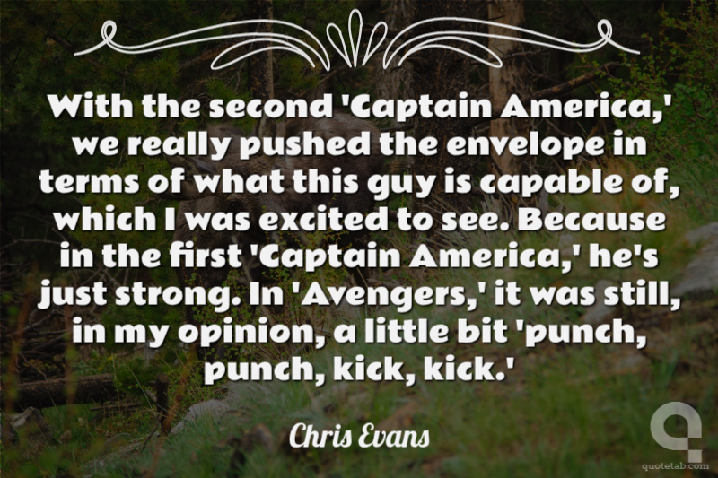 With the second 'Captain America,' we really pushed the envelope in terms of what this guy is capable of, which I was excited to see. Because in the first 'Captain America,' he's just strong. In 'Avengers,' it was still, in my opinion, a little bit 'punch, punch, kick, kick.'
