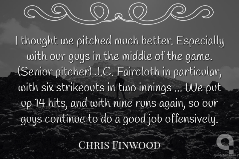 I thought we pitched much better. Especially with our guys in the middle of the game. (Senior pitcher) J.C. Faircloth in particular, with six strikeouts in two innings ... We put up 14 hits, and with nine runs again, so our guys continue to do a good job offensively.