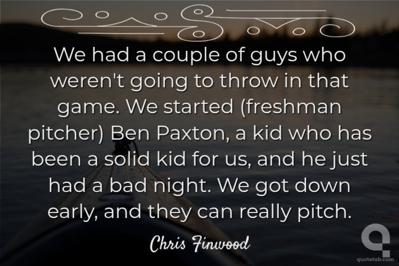 We had a couple of guys who weren't going to throw in that game. We started (freshman pitcher) Ben Paxton, a kid who has been a solid kid for us, and he just had a bad night. We got down early, and they can really pitch.