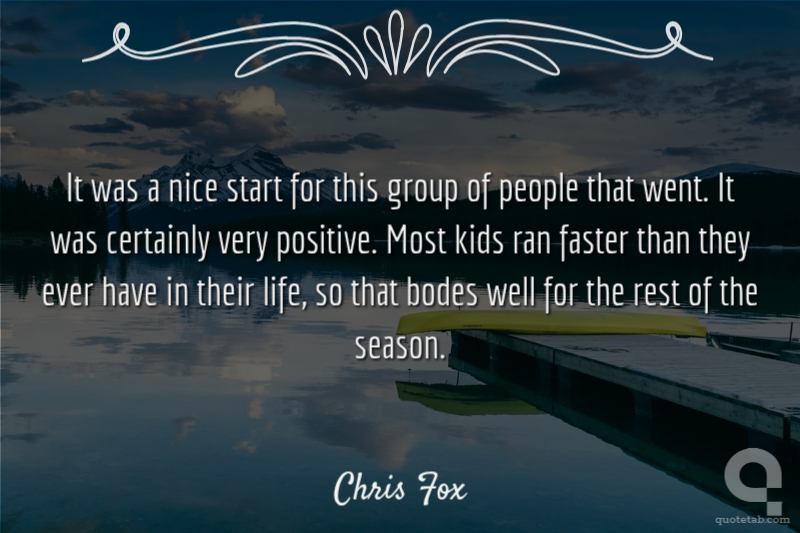 It was a nice start for this group of people that went. It was certainly very positive. Most kids ran faster than they ever have in their life, so that bodes well for the rest of the season.