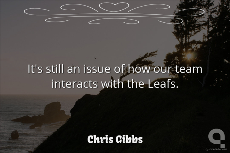 It's still an issue of how our team interacts with the Leafs.