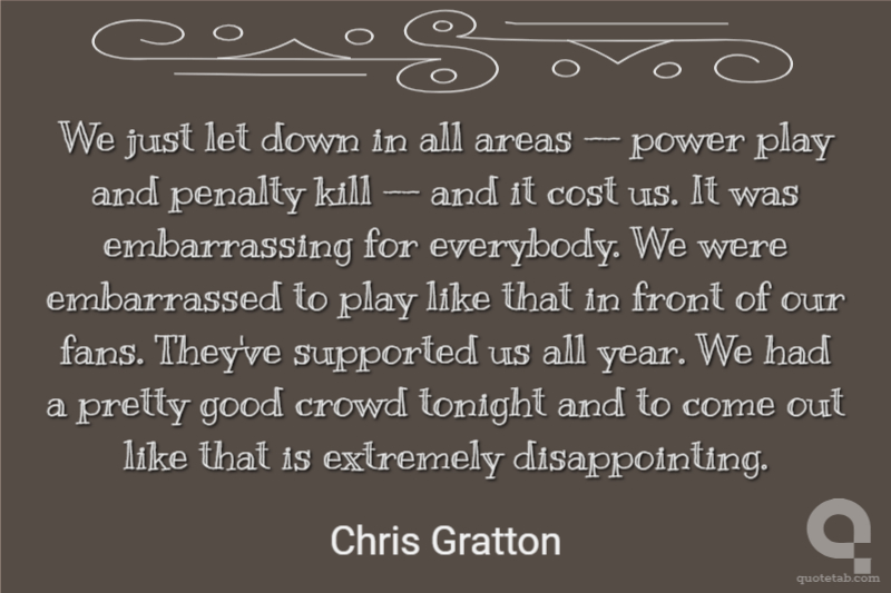 We just let down in all areas -- power play and penalty kill -- and it cost us. It was embarrassing for everybody. We were embarrassed to play like that in front of our fans. They've supported us all year. We had a pretty good crowd tonight and to come out like that is extremely disappointing.