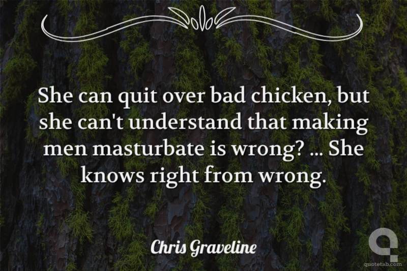 She can quit over bad chicken, but she can't understand that making men masturbate is wrong? ... She knows right from wrong.