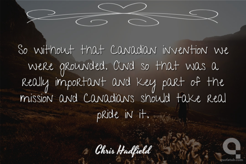 So without that Canadian invention we were grounded. And so that was a really important and key part of the mission and Canadians should take real pride in it.
