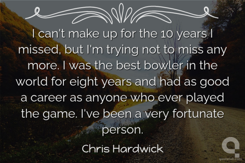 I can't make up for the 10 years I missed, but I'm trying not to miss any more. I was the best bowler in the world for eight years and had as good a career as anyone who ever played the game. I've been a very fortunate person.