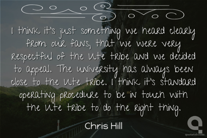 I think it's just something we heard clearly from our fans, that we were very respectful of the Ute tribe and we decided to appeal. The university has always been close to the Ute tribe. I think it's standard operating procedure to be in touch with the Ute tribe to do the right thing.
