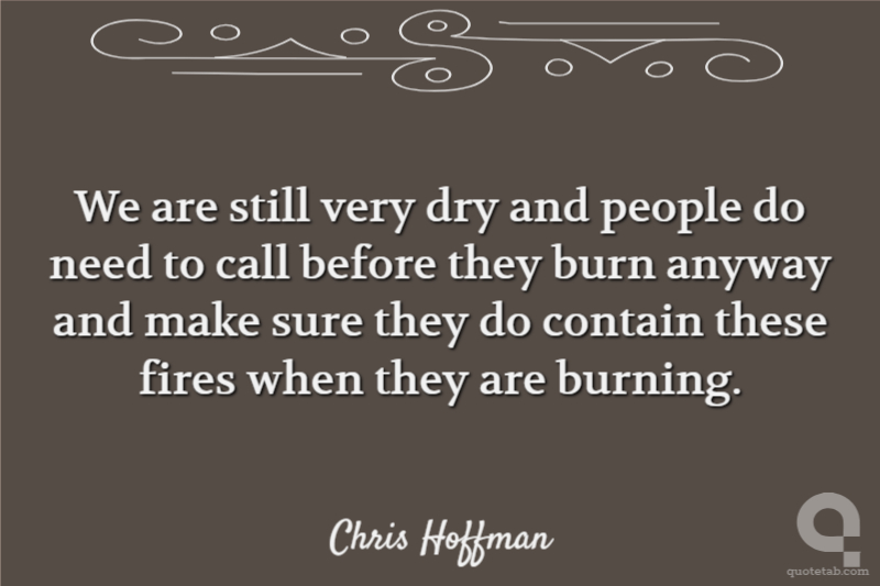 We are still very dry and people do need to call before they burn anyway and make sure they do contain these fires when they are burning.