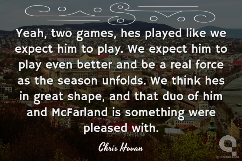 Yeah, two games, hes played like we expect him to play. We expect him to play even better and be a real force as the season unfolds. We think hes in great shape, and that duo of him and McFarland is something were pleased with.