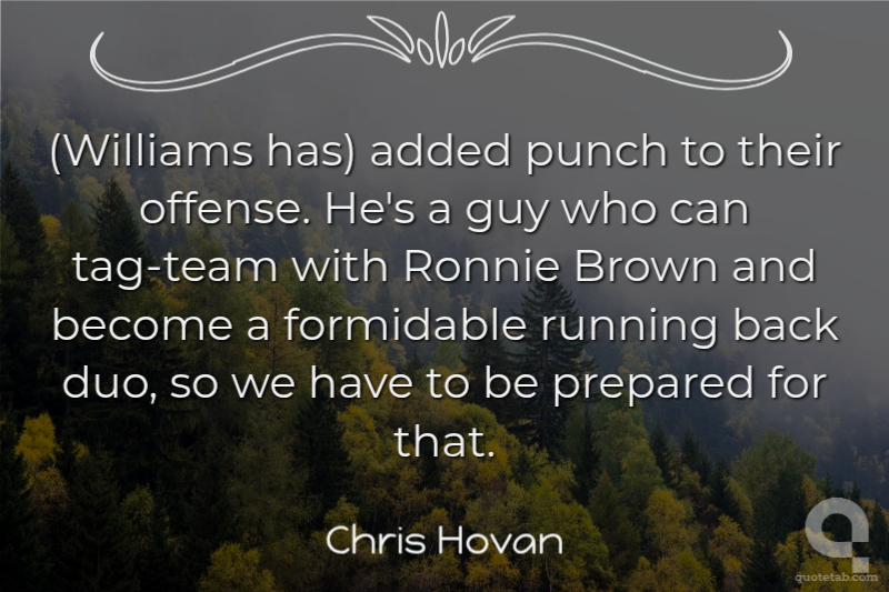 (Williams has) added punch to their offense. He's a guy who can tag-team with Ronnie Brown and become a formidable running back duo, so we have to be prepared for that.