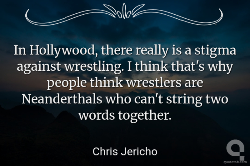 In Hollywood, there really is a stigma against wrestling. I think that's why people think wrestlers are Neanderthals who can't string two words together.