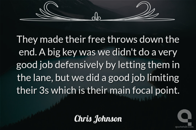 They made their free throws down the end. A big key was we didn't do a very good job defensively by letting them in the lane, but we did a good job limiting their 3s which is their main focal point.