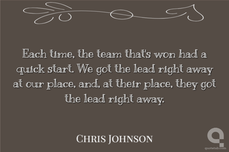 Each time, the team that's won had a quick start. We got the lead right away at our place, and, at their place, they got the lead right away.