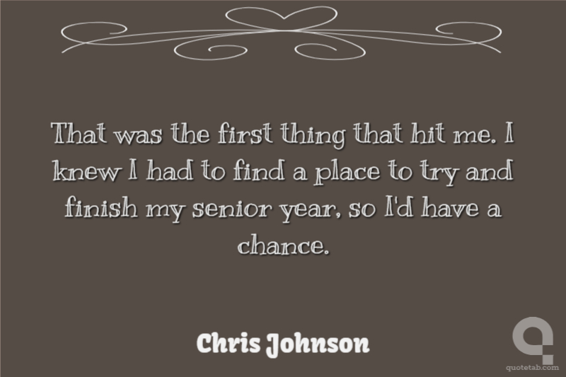 That was the first thing that hit me. I knew I had to find a place to try and finish my senior year, so I'd have a chance.
