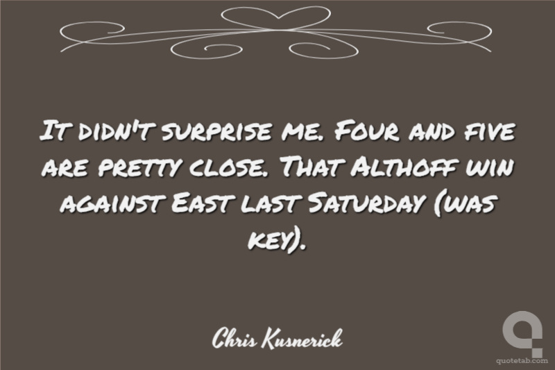 It didn't surprise me. Four and five are pretty close. That Althoff win against East last Saturday (was key).