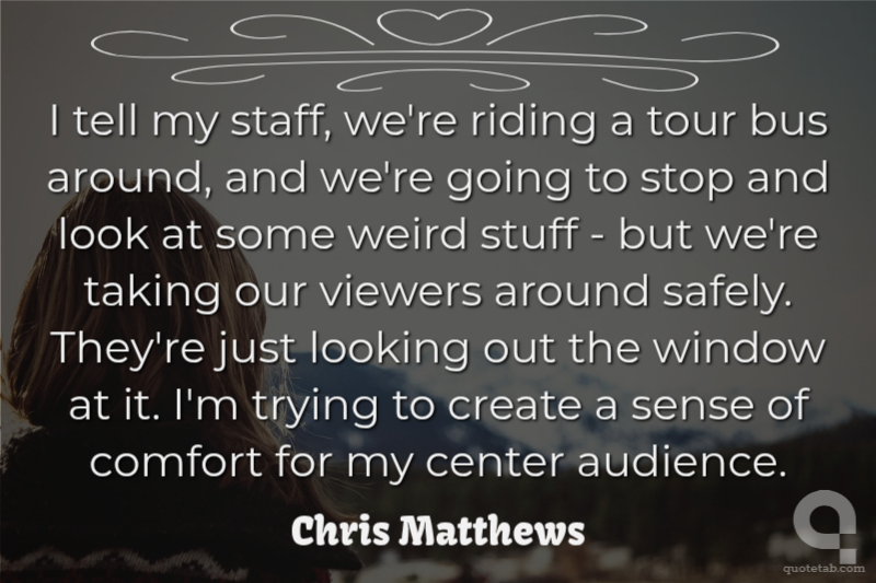 I tell my staff, we're riding a tour bus around, and we're going to stop and look at some weird stuff - but we're taking our viewers around safely. They're just looking out the window at it. I'm trying to create a sense of comfort for my center audience.