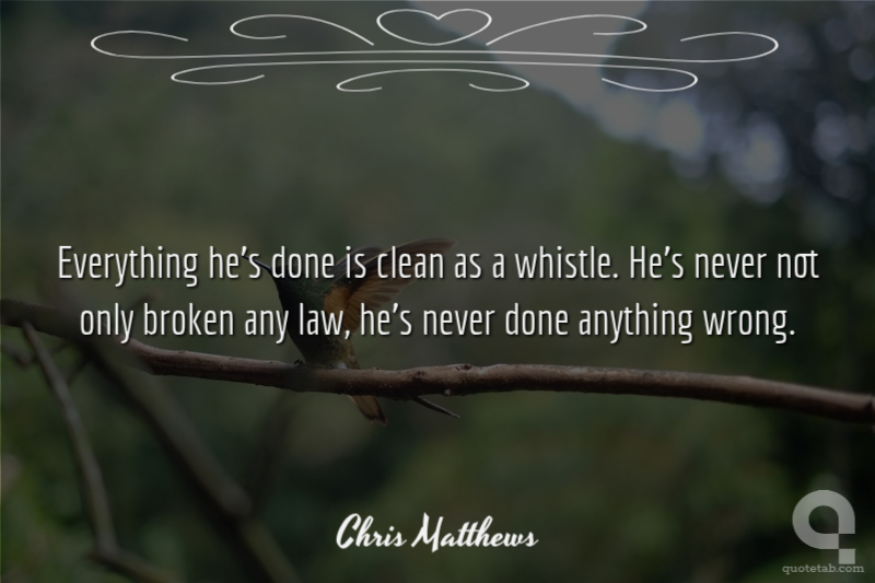 Everything he's done is clean as a whistle. He's never not only broken any law, he's never done anything wrong.