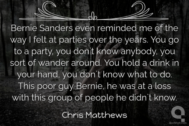 Bernie Sanders even reminded me of the way I felt at parties over the years. You go to a party, you don`t know anybody, you sort of wander around. You hold a drink in your hand, you don`t know what to do. This poor guy Bernie, he was at a loss with this group of people he didn`t know.