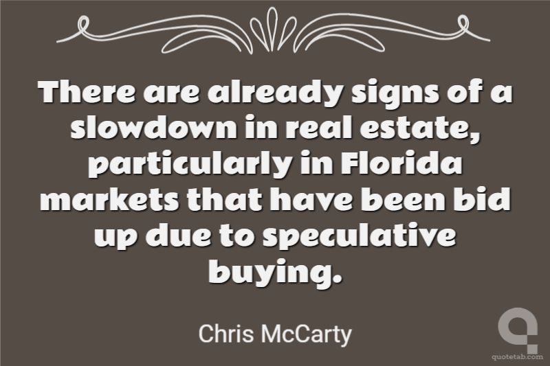 There are already signs of a slowdown in real estate, particularly in Florida markets that have been bid up due to speculative buying.