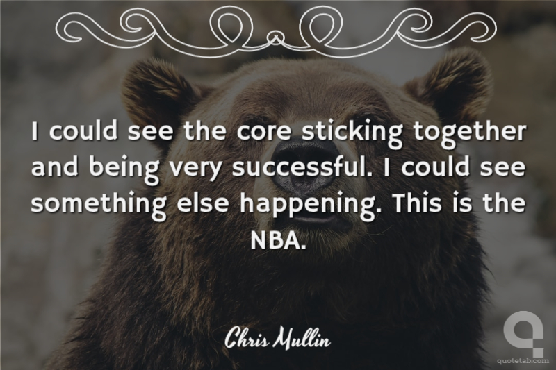 I could see the core sticking together and being very successful. I could see something else happening. This is the NBA.