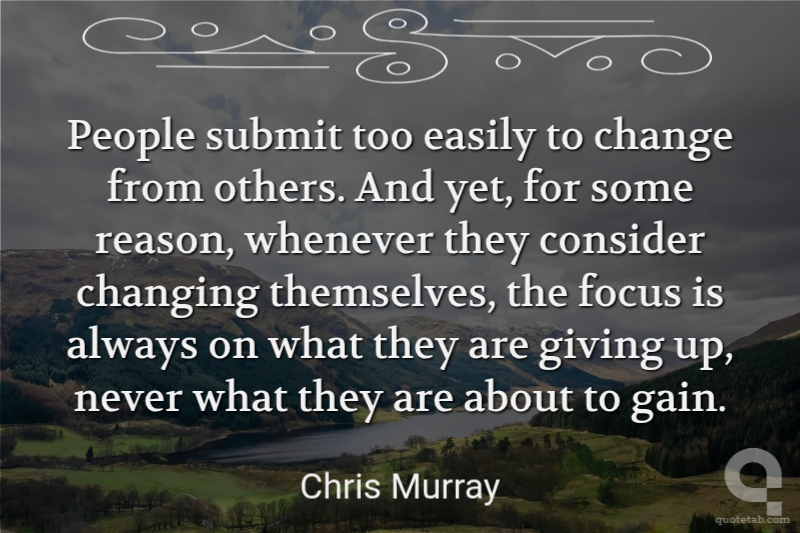 People submit too easily to change from others. And yet, for some reason, whenever they consider changing themselves, the focus is always on what they are giving up, never what they are about to gain.