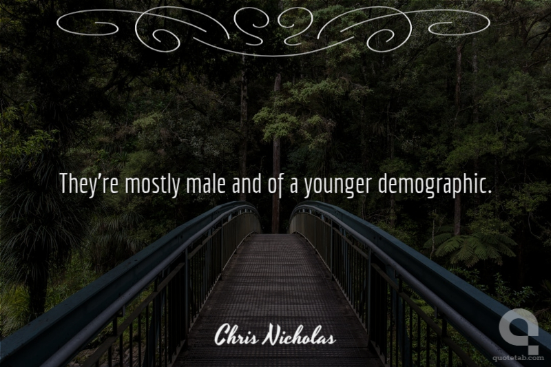 We'll see, in years to come, that our Challenge will be made available in all forms of wireless communications. You can make your picks right now on your telephone. You can get updates on how you're doing on the telephone, and we'll keep going to where fans are going to consume information. We also look forward to connecting fans to the Challenge via their cable providers and game consoles. Our sponsors see the need to be visible here and that's where we're going to take them. We have a firm lock on the 18 to 34 men's demographic. They know that, and it's a key demographic for them to reach.