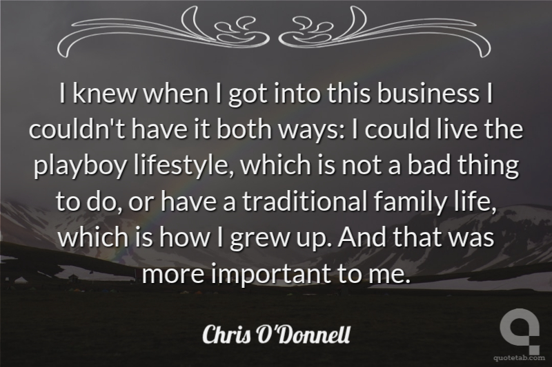 I knew when I got into this business I couldn't have it both ways: I could live the playboy lifestyle, which is not a bad thing to do, or have a traditional family life, which is how I grew up. And that was more important to me.