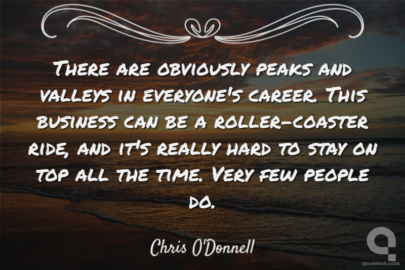 There are obviously peaks and valleys in everyone's career. This business can be a roller-coaster ride, and it's really hard to stay on top all the time. Very few people do.