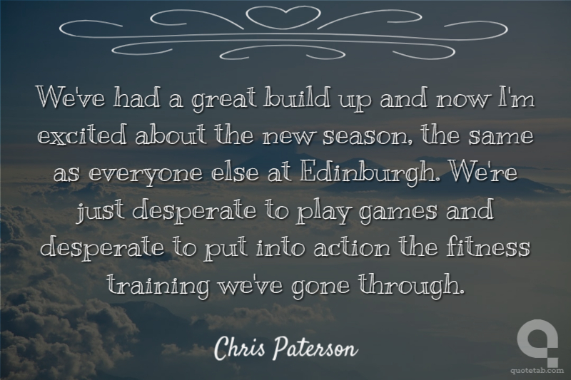 We've had a great build up and now I'm excited about the new season, the same as everyone else at Edinburgh. We're just desperate to play games and desperate to put into action the fitness training we've gone through.