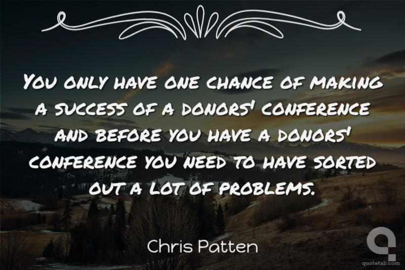 You only have one chance of making a success of a donors' conference and before you have a donors' conference you need to have sorted out a lot of problems.