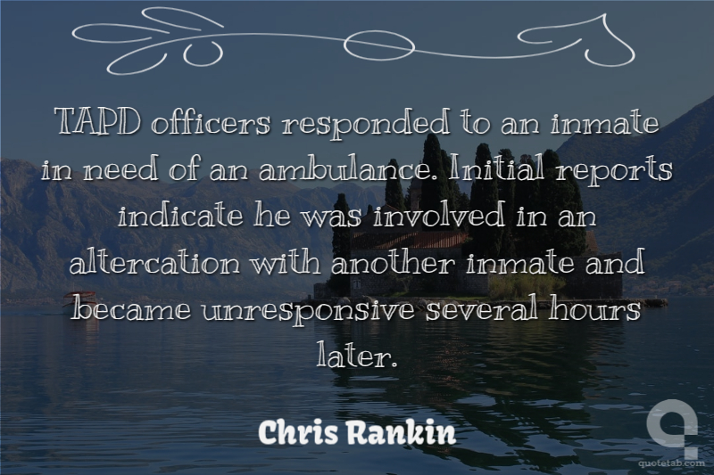 TAPD officers responded to an inmate in need of an ambulance. Initial reports indicate he was involved in an altercation with another inmate and became unresponsive several hours later.