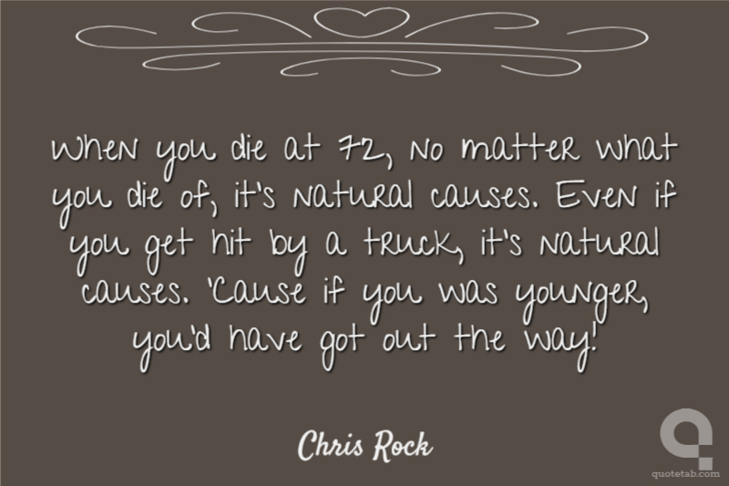 When you die at 72, no matter what you die of, it's natural causes. Even if you get hit by a truck, it's natural causes. 'Cause if you was younger, you'd have got out the way!
