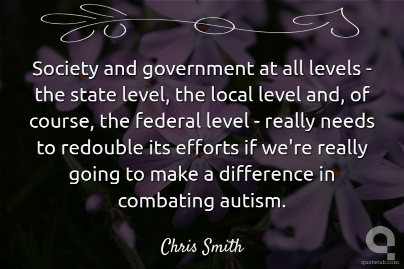Society and government at all levels - the state level, the local level and, of course, the federal level - really needs to redouble its efforts if we're really going to make a difference in combating autism.
