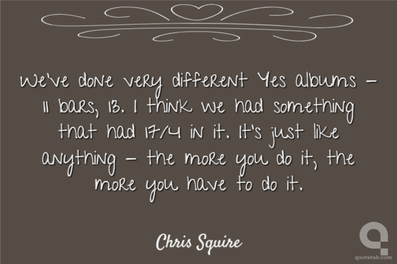 We've done very different Yes albums - 11 bars, 13. I think we had something that had 17/4 in it. It's just like anything - the more you do it, the more you have to do it.
