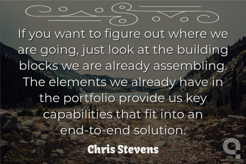 If you want to figure out where we are going, just look at the building blocks we are already assembling. The elements we already have in the portfolio provide us key capabilities that fit into an end-to-end solution.