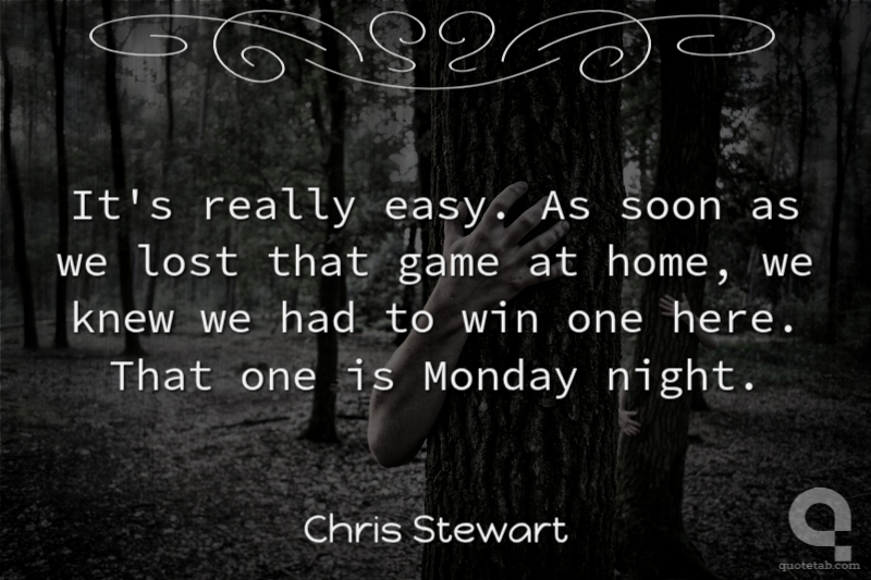 It's really easy. As soon as we lost that game at home, we knew we had to win one here. That one is Monday night.