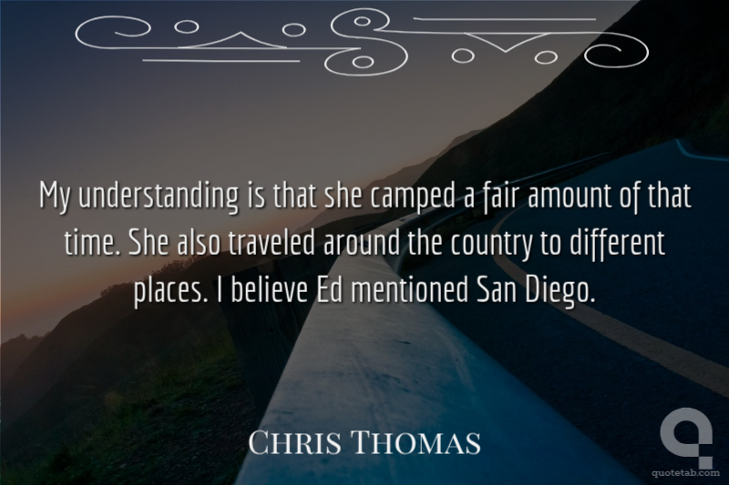 My understanding is that she camped a fair amount of that time. She also traveled around the country to different places. I believe Ed mentioned San Diego.