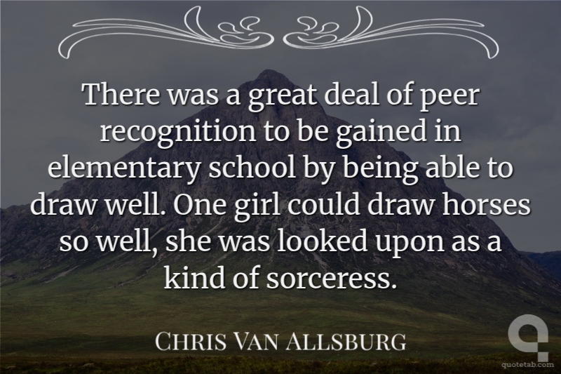There was a great deal of peer recognition to be gained in elementary school by being able to draw well. One girl could draw horses so well, she was looked upon as a kind of sorceress.
