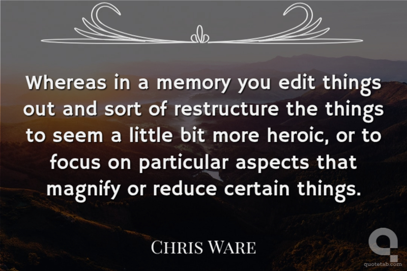 Franklin Christenson "Chris" Ware, is an American cartoonist known for his Acme Novelty Library seriesand the graphic novels Jimmy Corrigan, the Smartest Kid on Earthand Building Stories. His works explore themes of social isolation, emotional torment and depression. He tends to use a vivid color palette and realistic, meticulous detail. His lettering and images are often elaborate and sometimes evoke the ragtime era or another early 20th-century American design style...