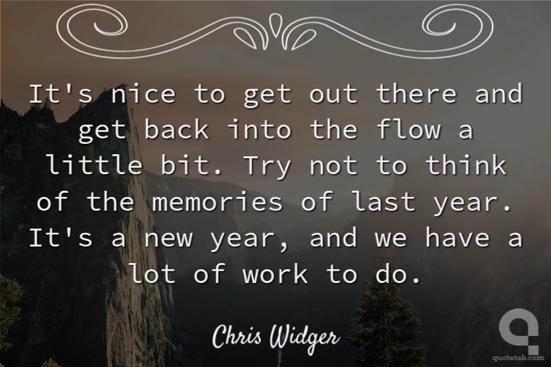 It's nice to get out there and get back into the flow a little bit. Try not to think of the memories of last year. It's a new year, and we have a lot of work to do.