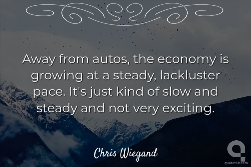Away from autos, the economy is growing at a steady, lackluster pace. It's just kind of slow and steady and not very exciting.